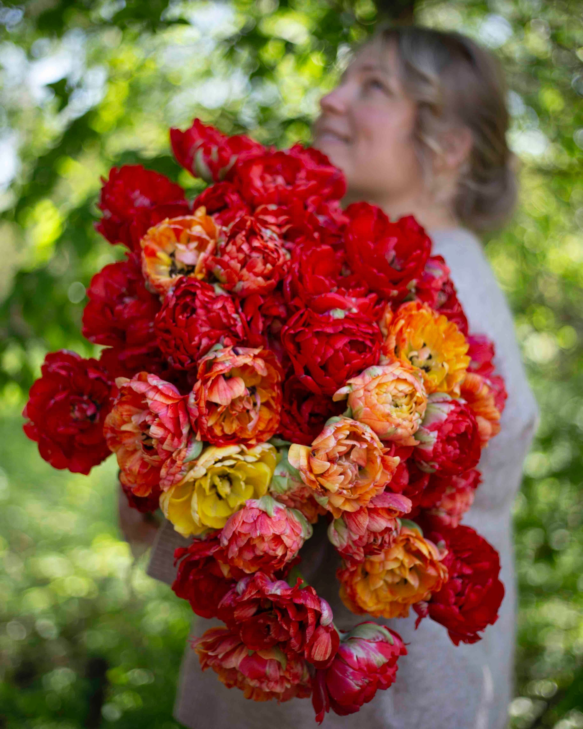 Gudoshnik Double on yksi aikaisin kukkivista ja näyttävimmistä pioneiksi tituleeratuista tulppaaneistamme. Sen valtavankokoiset kukat hurmaavat syvän punaisen, lämpimän lohenpunaisen ja pehmeän kermaisen kellertävän sävyjen kauniilla sekoituksella. Tämä lajike kuuluu suurimpiin tulppaaneihin, ja sen kerrannaiset, tuoksuvat kukat vangitsevat katseen vuodesta toiseen.